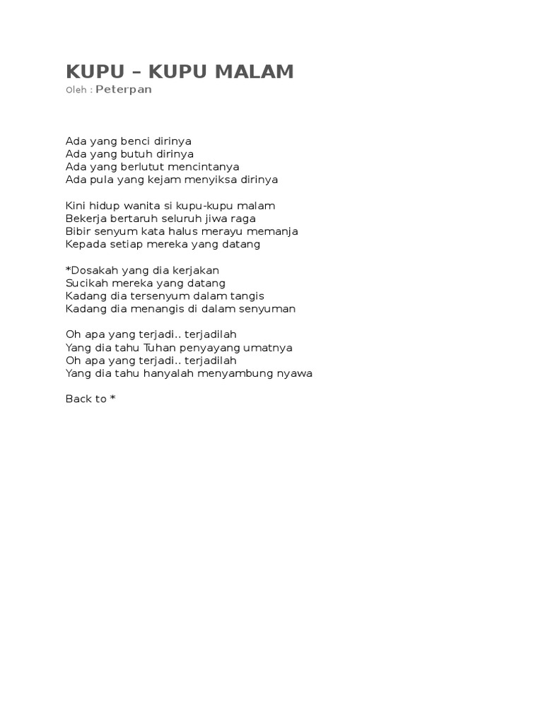 Image result for lirik lagu kupu kupu malam | Lirik lagu, Kupu …