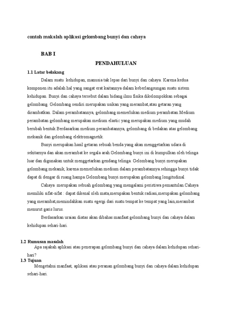 Contoh Makalah Aplikasi Gelombang Bunyi Dan Cahaya