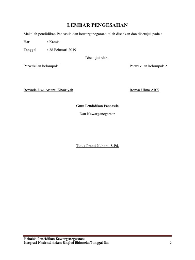 Lembar Pengesahan: Makalah Pendidikan Kewarganegaraan …