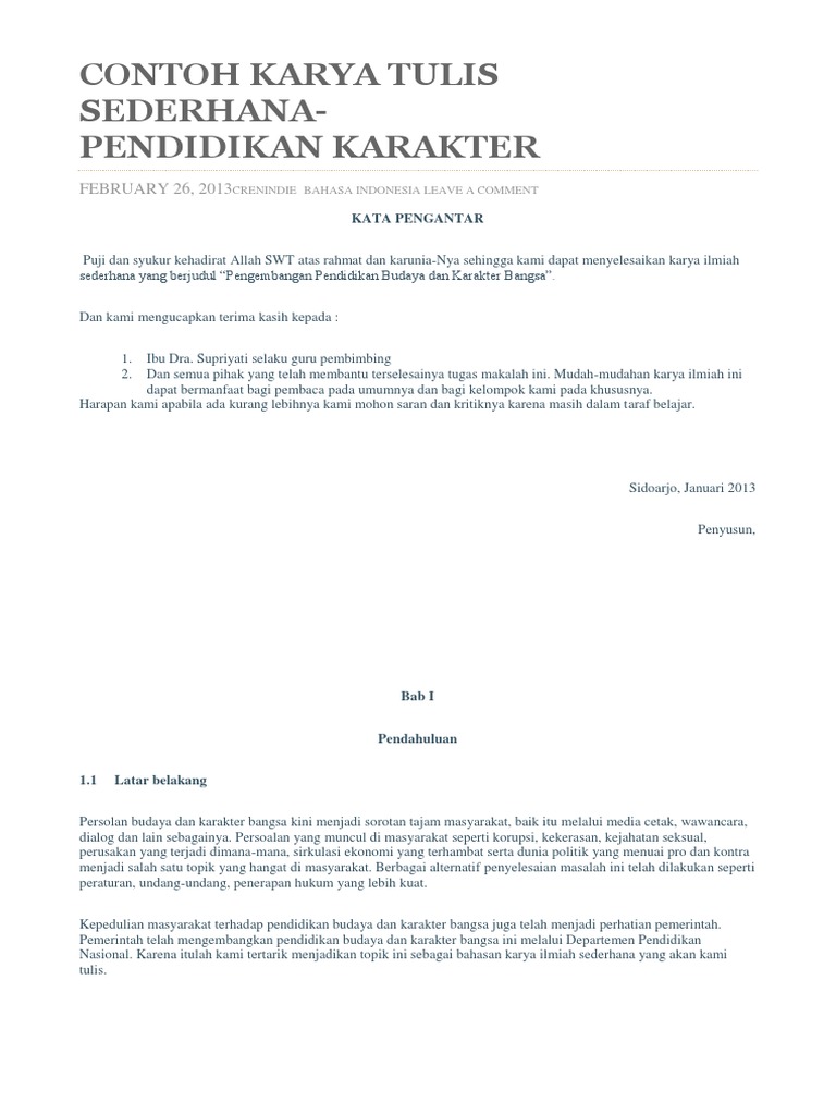 Contoh Karya Tulis Sederhana Tentang Pendidikan Budaya dan …