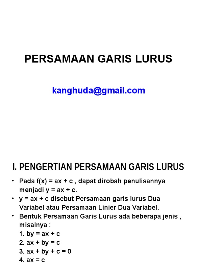 DOC) PERSAMAAN GARIS LURUS | Ahmad Fatoni - Academia.edu