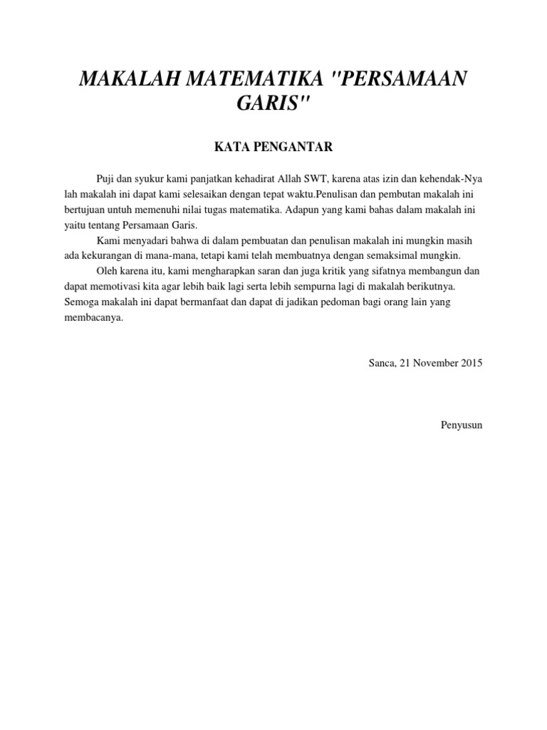 MAKALAH PERSAMAAN GARIS LURUS – YAYASAN PENDIDIKAN NURUL IMAN GEDUNG ASRI