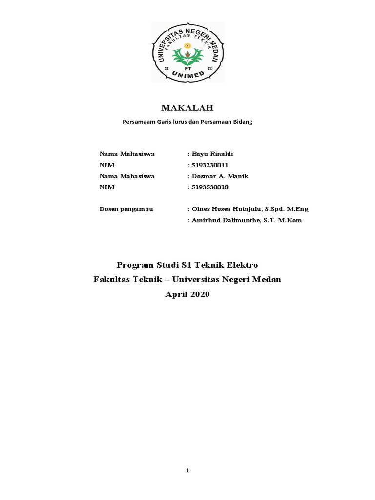 Makalah: Nama Mahasiswa: Bayu Rinaldi NIM: 5193230011 Nama Mahasiswa: Dosmar A. Manik NIM: 5193530018