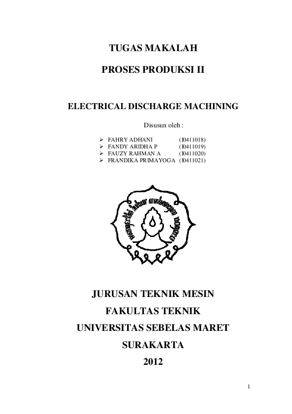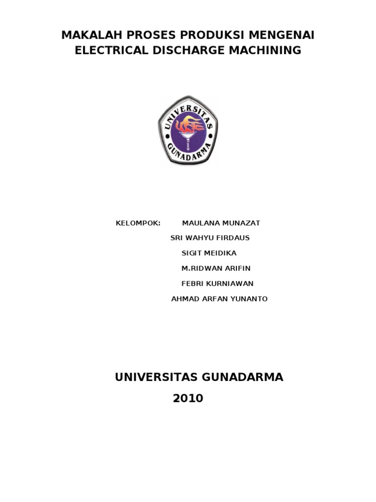 DOC) TUGAS MAKALAH PROSES PRODUKSI II ELECTRICAL DISCHARGE MACHINING | Elang Khatulistiwa - Academia.edu