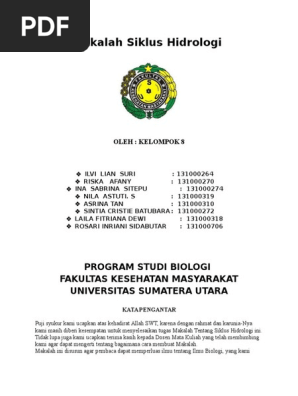 312376303-Makalah-Siklus-Hidrologi-1.docx - Makalah Siklus Hidrologi OLEH KELOMPOK 8 ILVI LIAN SURI RISKA AFANY INA SABRINA SITEPU NILA ASTUTI S ASRINA | Course Hero