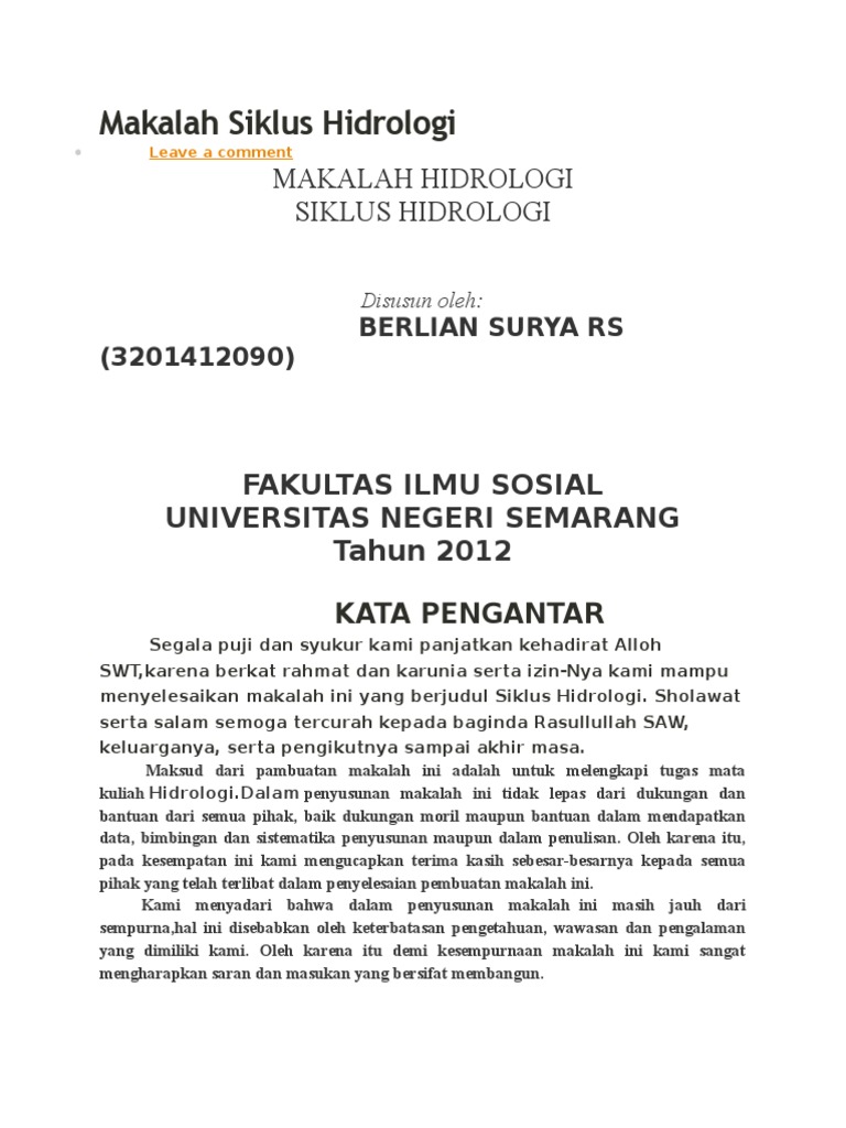 DOC) HIDROLOGI : SIKLUS HIDROLOGI | ellese sulistianingsih - Academia.edu