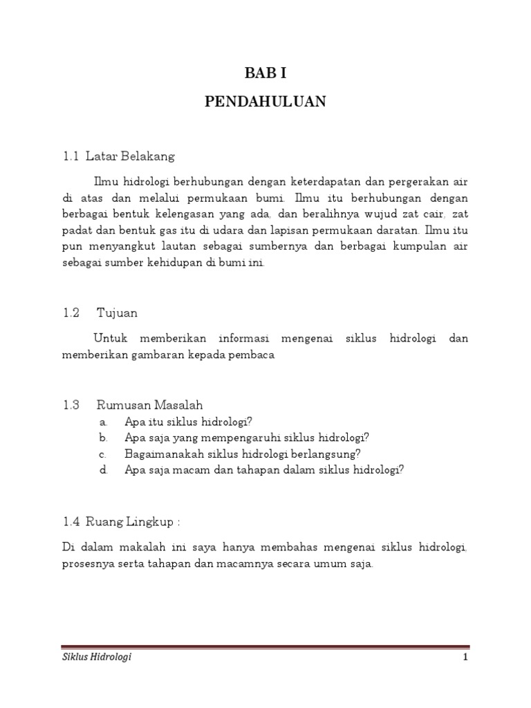 BAB I PENDAHULUAN. siklus hidrologi. Siklus air adalah rangkaian peristiwa yang terjadi pada air - PDF Free Download