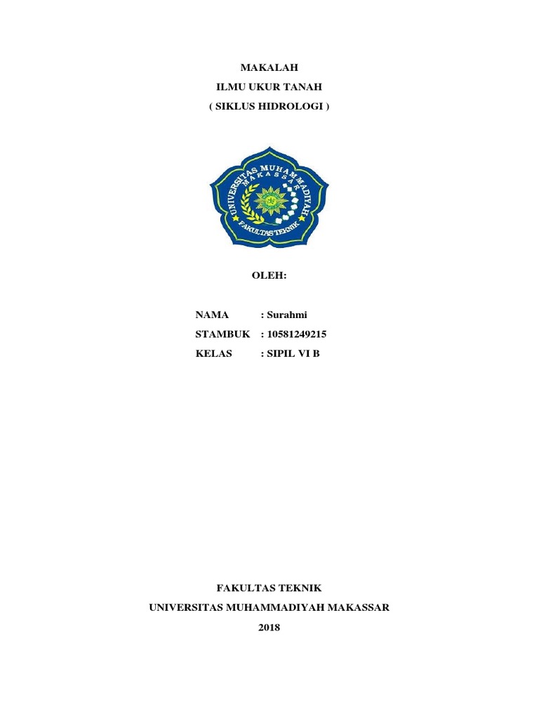 191595576-Makalah-Siklus-Hidrologi.docx - TUGAS KESEHATAN LINGKUNGAN SIKLUS HIDROLOGI Oleh Cahya Septia Sardiawan 13120706026 PROGRAM STUDI S1 ILMU | Course Hero