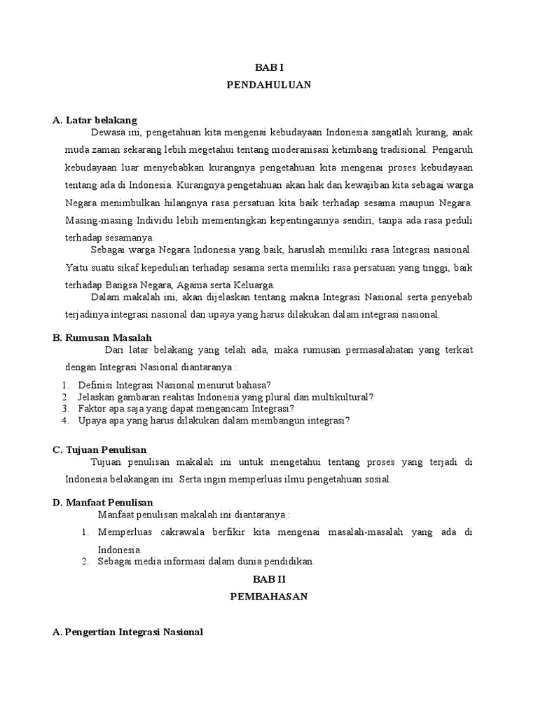 Contoh Makalah Pkn Bab Integrasi Nasional - Download Contoh …