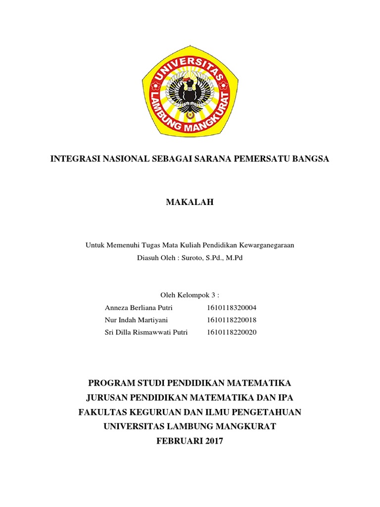 DOC) Makalah Tugas Kewarganegaraan: Pentingnya Peranan Integrasi …