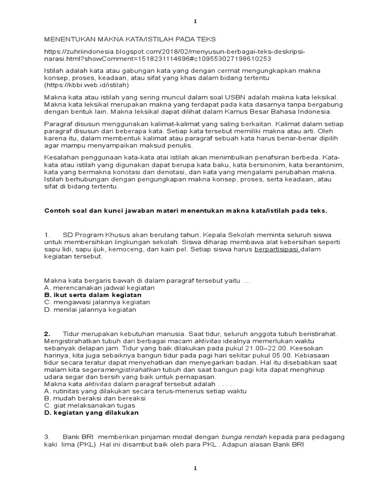 Menentukan Makna Kata Istilah Pada Teks Lengkap
