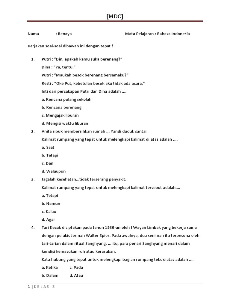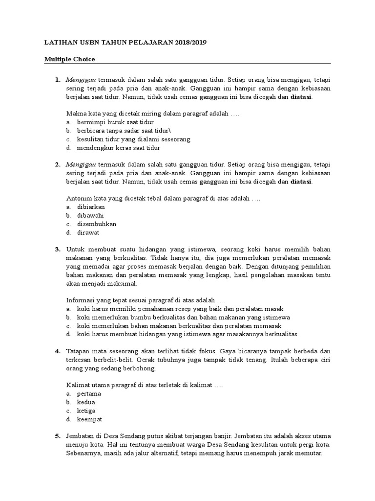 Soal Latihan Usbn 2019 Bahasa Indonesia Dan Kunci Jawaban