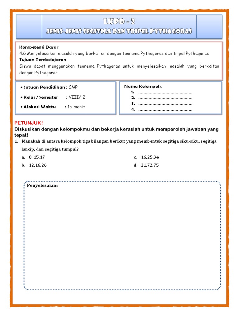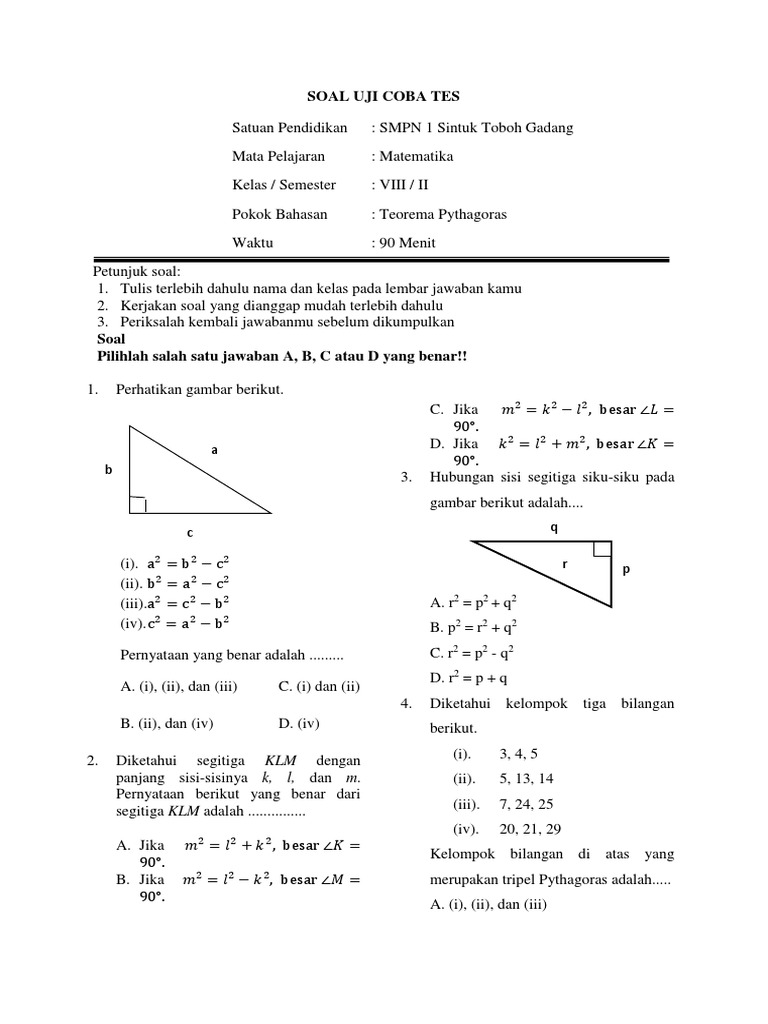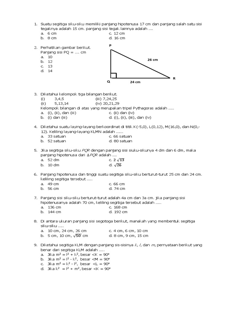 1.Temukan dua buah tripel phytagoras 2.Manakah di antara kelompok …