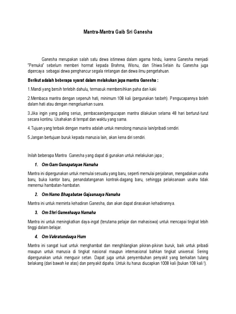 Mantra-Mantra Gaib Sri Ganesha: Berikut adalah beberapa syarat dalam melakukan japa mantra Ganesha