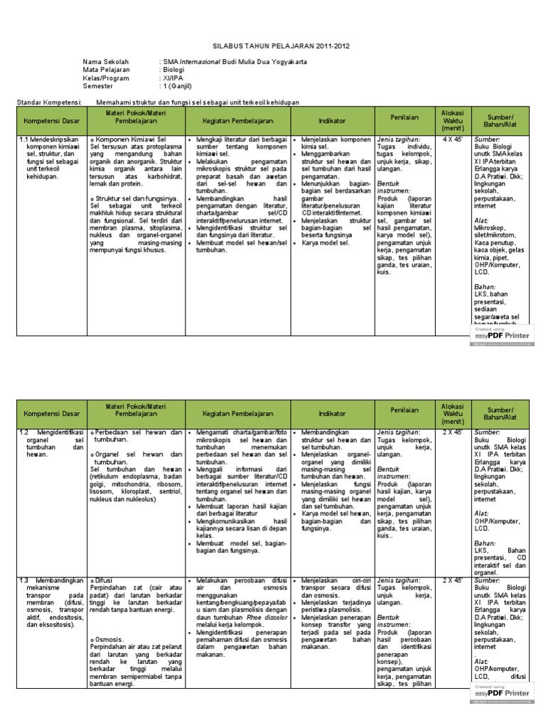 SILABUS Biologi Kelas XI