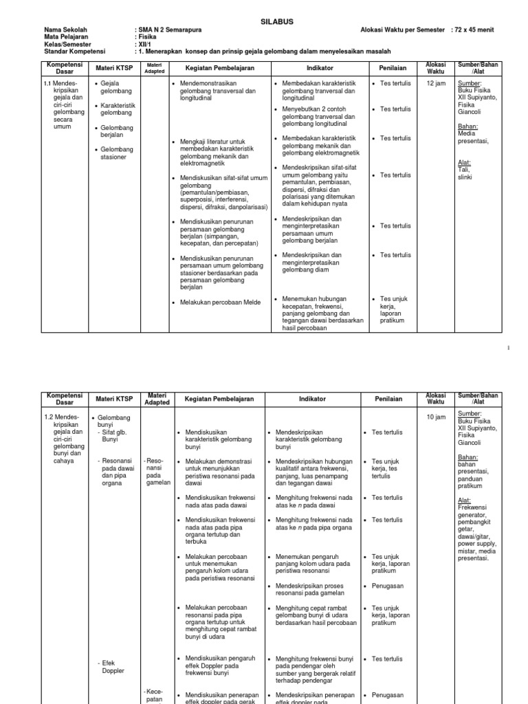 DOC) SILABUS KURIKULUM 2013 FISIKA SMA KELAS XII | Diajeng Ramadhan - Academia.edu