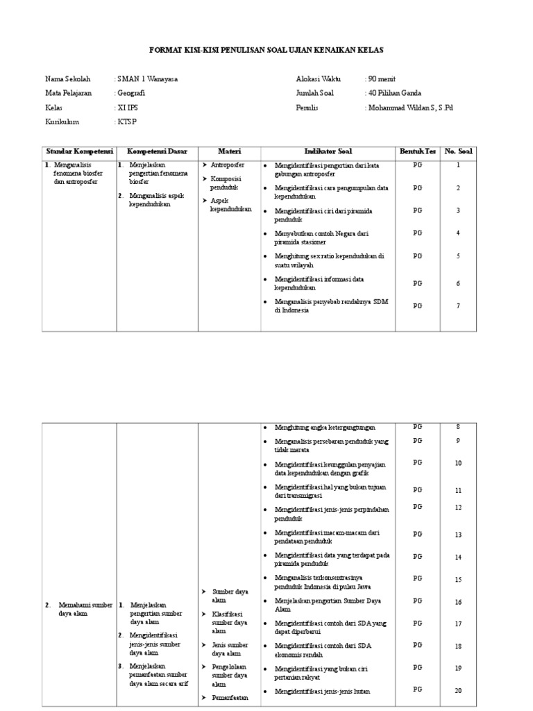 Format Kisi-kisi Soal Ukk Geografi Kelas Xi Semester 2
