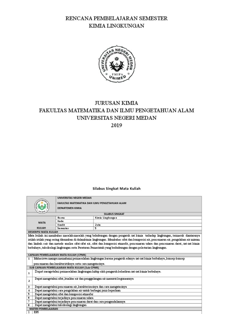 Cetak Matakuliah Kurikulum - Kimia UNP