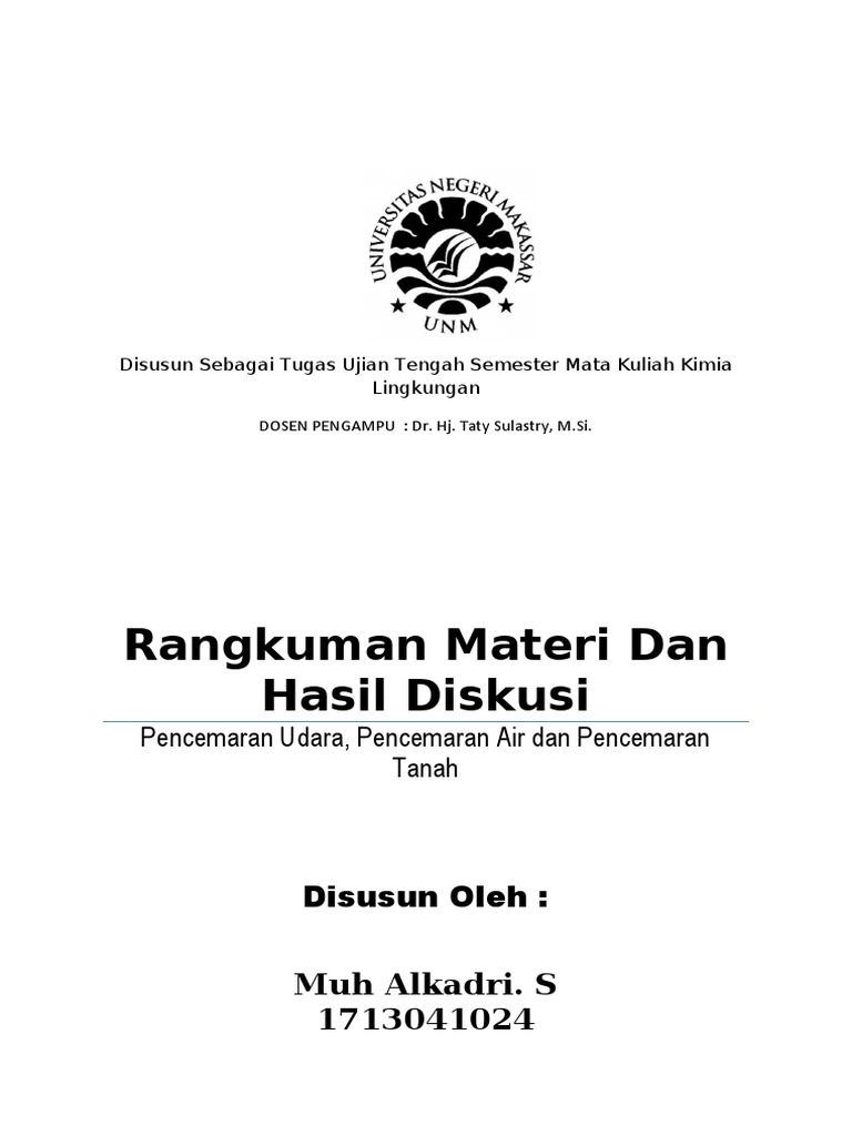 DOC) MAKALAH PENCEMARAN LINGKUNGAN | Auliya Manshur - Academia.edu