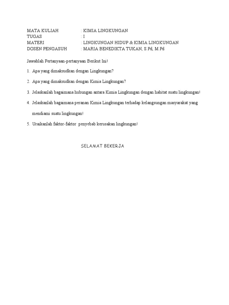 MATA KULIAH KIMIA LINGKUNGAN - [PPTX Powerpoint]
