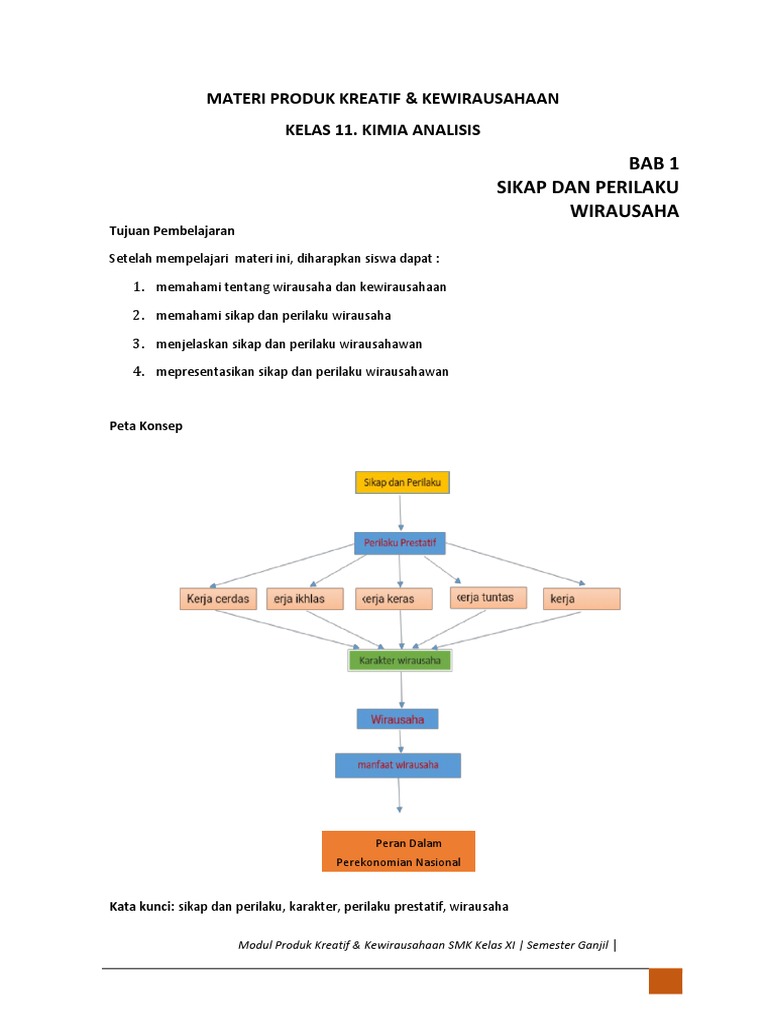 Materi Produk Kreatif Kewirausahaan Bab 1 Sikap dan Perilaku Wirausahawan - SMK INDONESIA 1