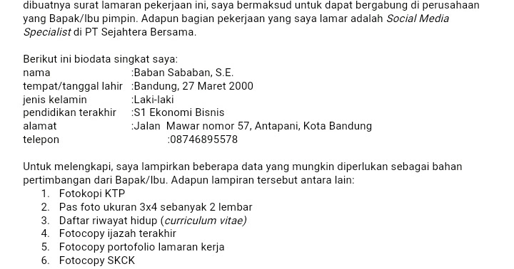 208 Contoh Surat Lamaran Pekerjaan Materi Bahasa Indonesia Kelas 12