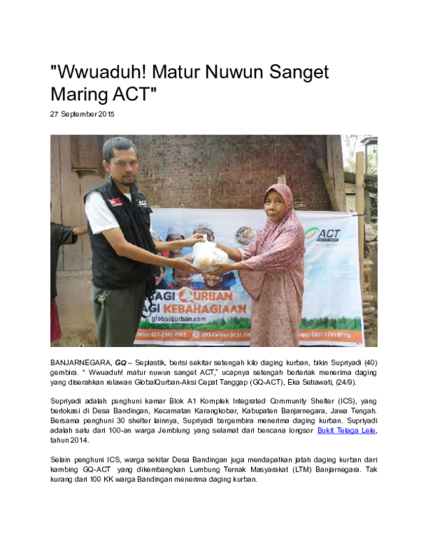 DOC) “Wwuaduh! Matur Nuwun Sanget Maring ACT” | Aksi Cepat Tanggap …