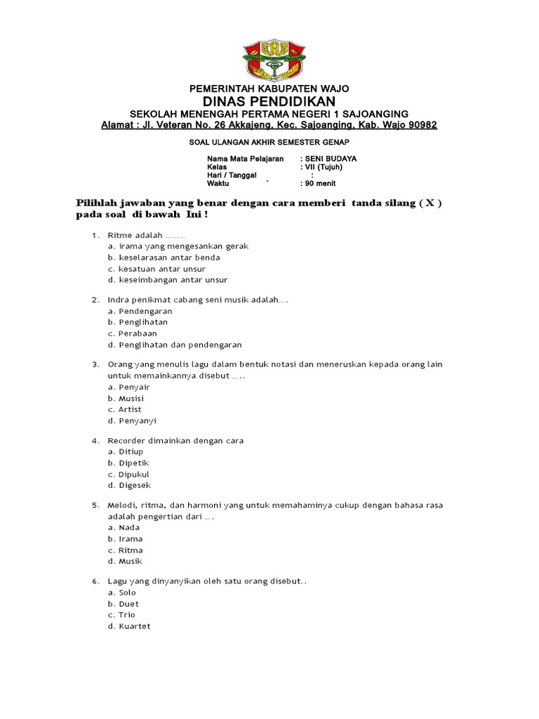 Soal Seni Budaya Kelas Vii Semester 2 [9n0krx2rek4v]
