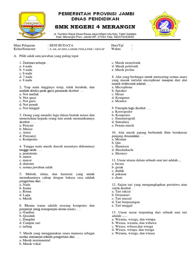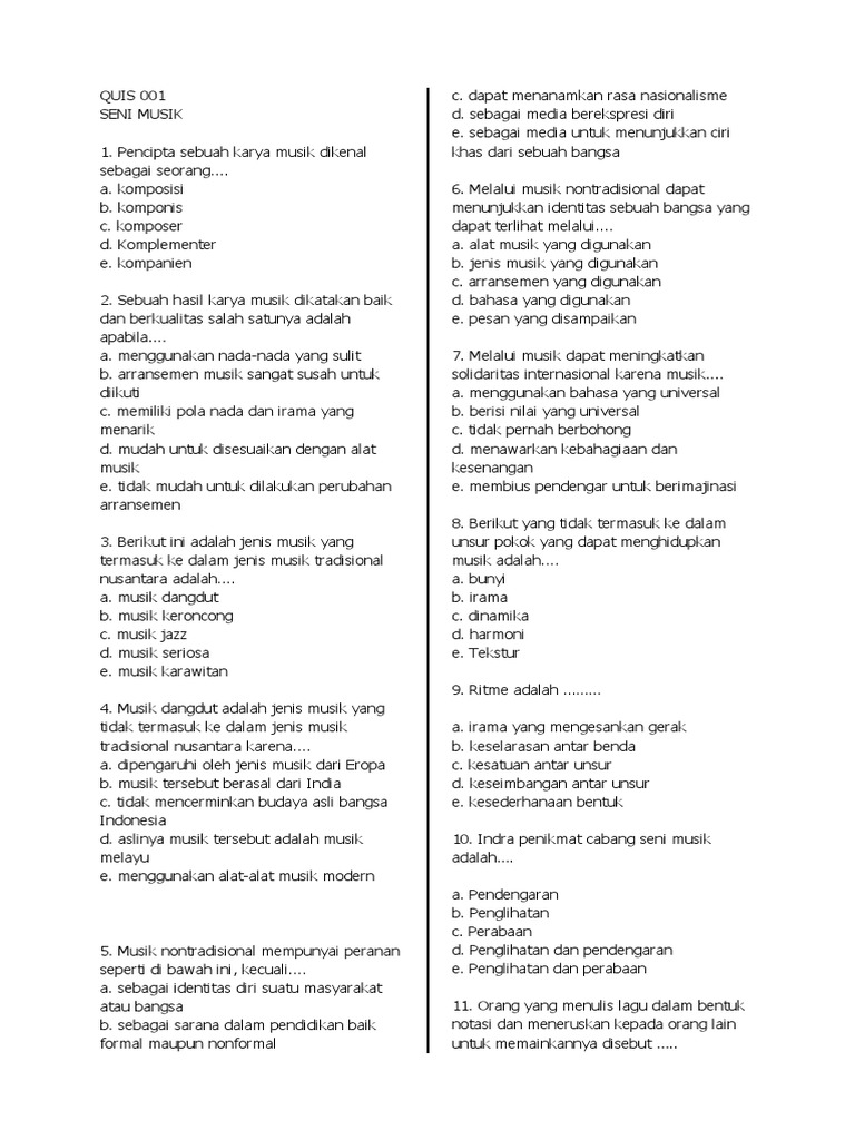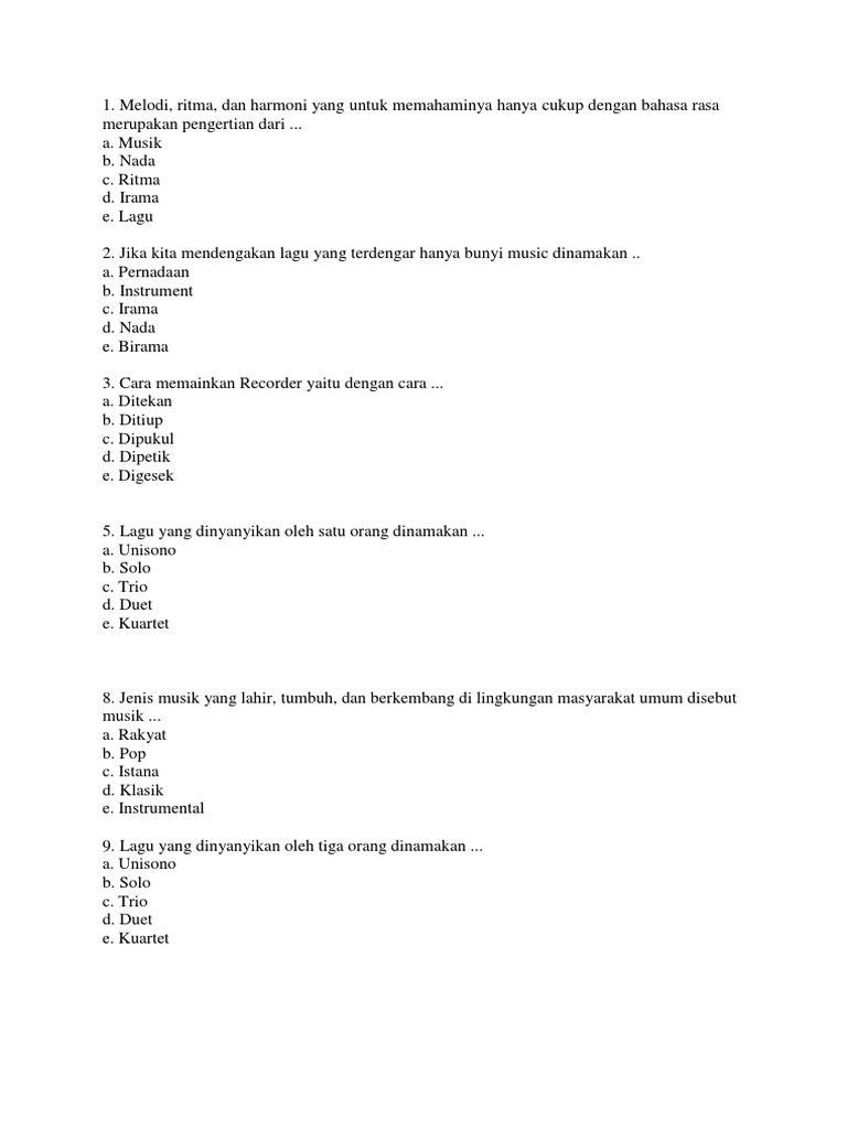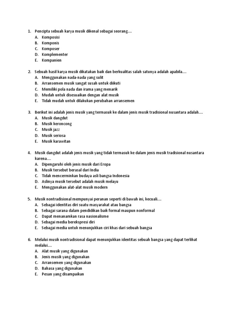 Soal Seni Musik Pilihan Ganda Beserta Jawaban - [DOCX Document]