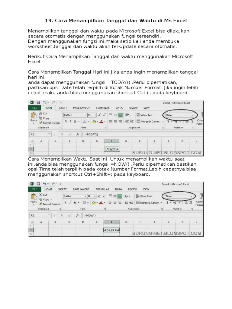 19. Cara Menampilkan Tanggal Dan Waktu Di Ms Excel