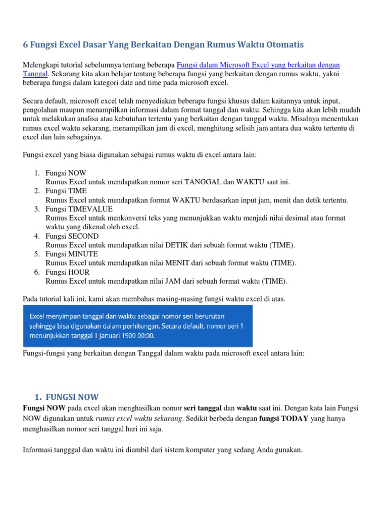 6 Fungsi Excel Dasar Yang Berkaitan Dengan Rumus Waktu Otomatis