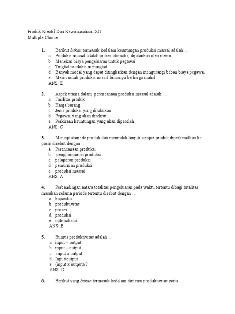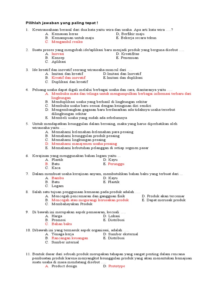 Soal Produk Kreatif dan Kewirausahaan (PKK) Kelas 12 Semester 2 …