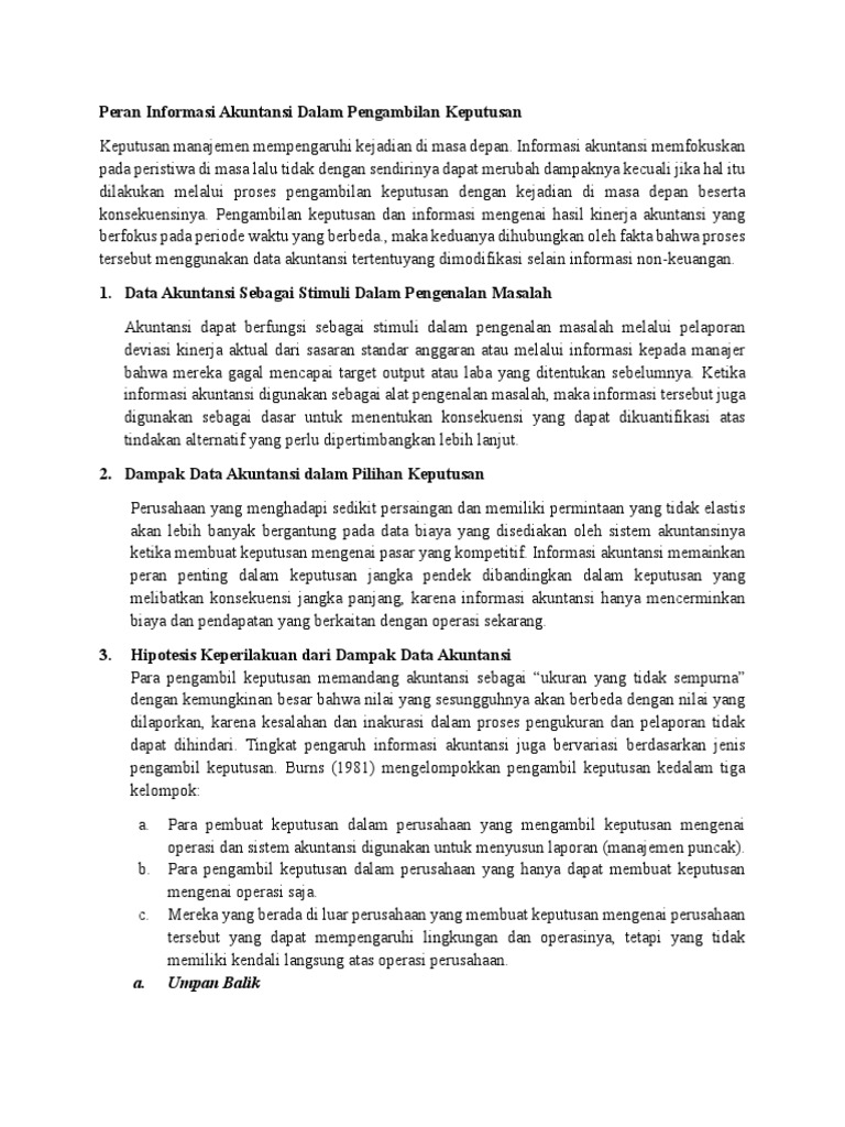 PDF) PERANAN INFORMASI AKUNTANSI MANAJEMEN DALAM PENGAMBILAN KEPUTUSAN DAN PERUMUSAN KEBIJAKAN
