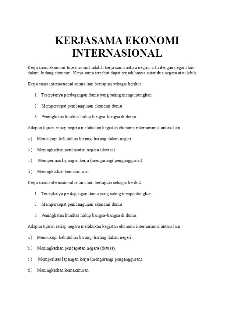 KERJASAMA EKONOMI INTERNASIONAL - PDF Free Download
