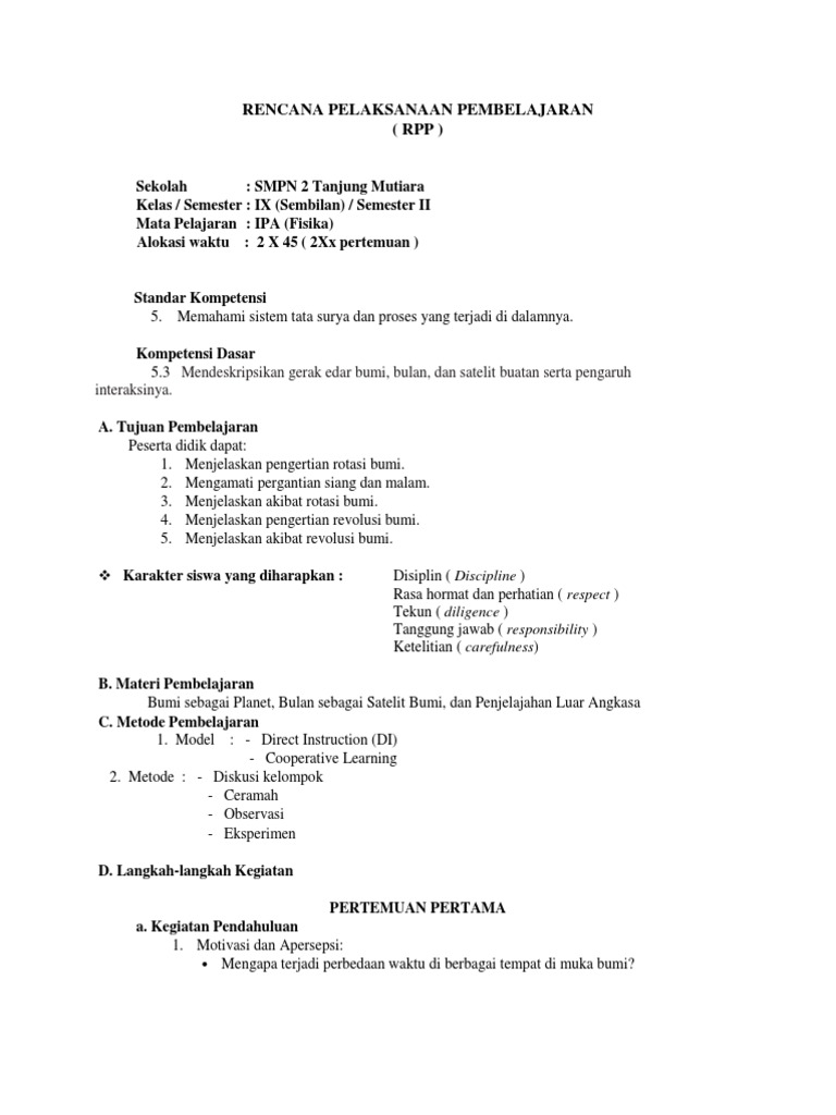 RENCANA PELAKSANAAN PEMBELAJARAN