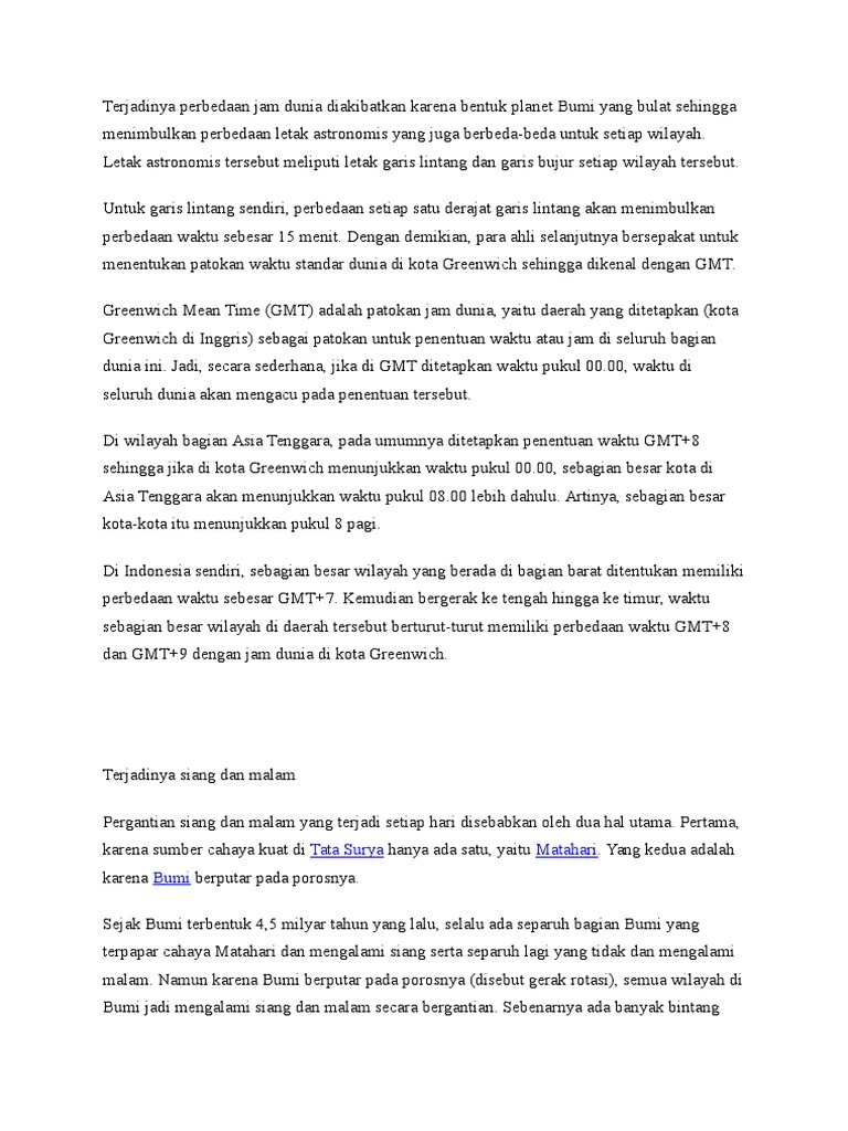 Jelaskan penyebab terjadinya perbedaan waktu di bumi serta cara …