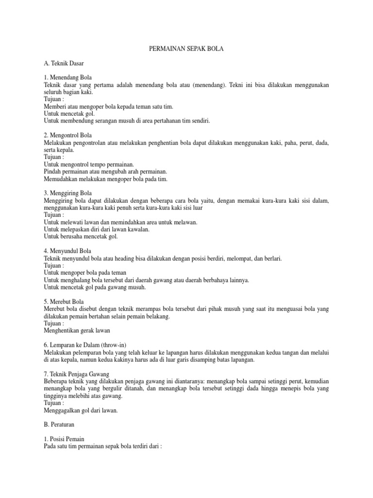 10 TEKNIK DASAR SEPAK BOLA Beserta Peraturannya [LENGKAP]