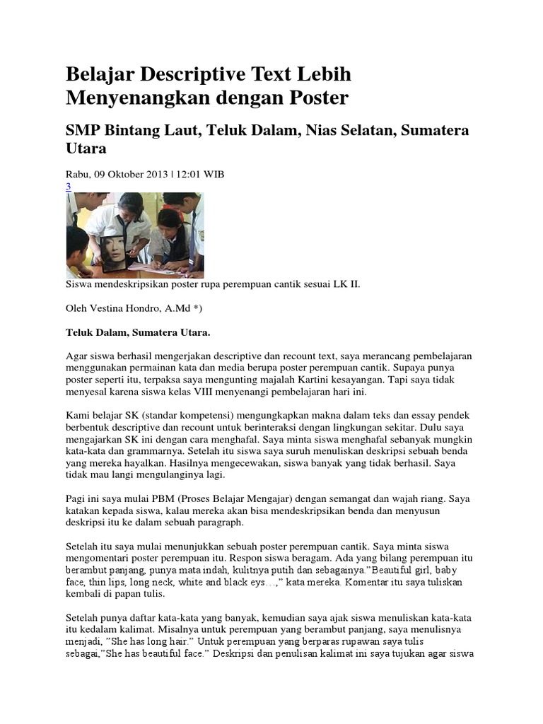 Contoh Mengajar Descriptive Text Bahasa Inggris Menggunakan …
