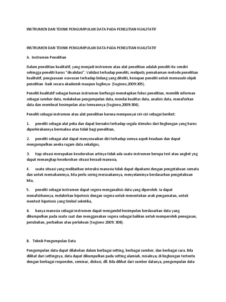 Instrumen Dan Teknik Pengumpulan Data Pada Penelitian Kualitatif