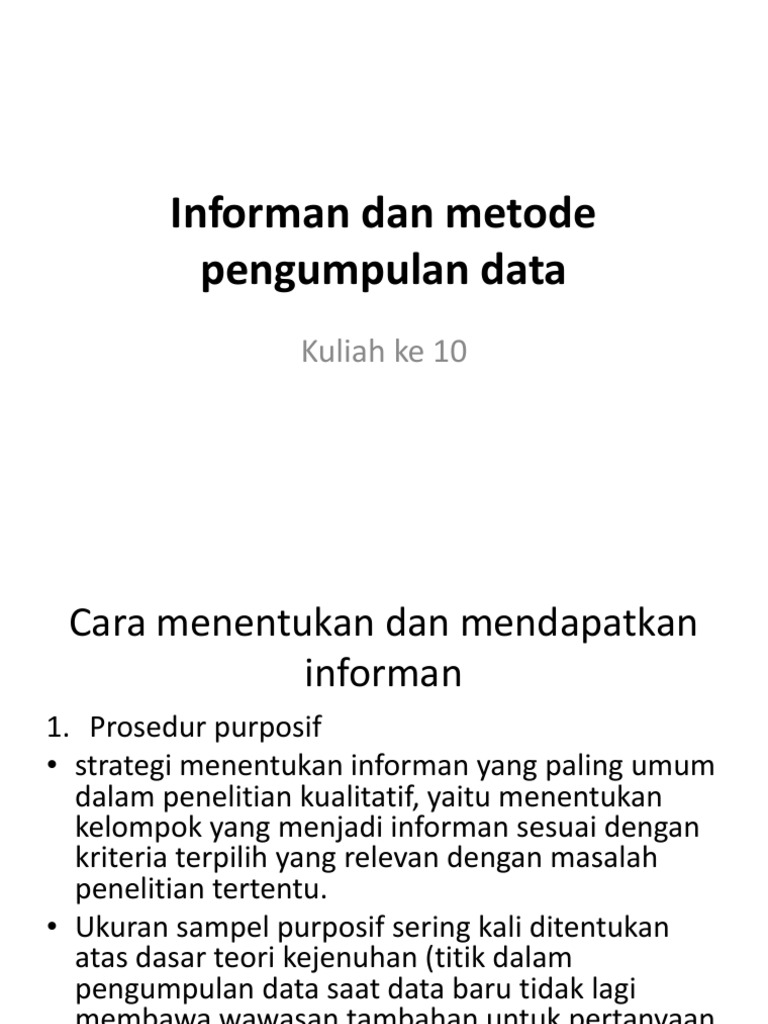 Kuliah Ke 10 Informan Dan Metode Pengumpulan Data