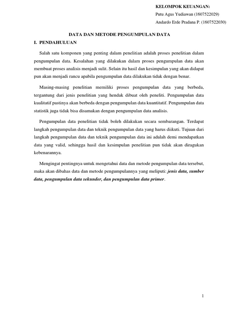 Data Dan Metode Pengumpulan Data I. Pendahuluan