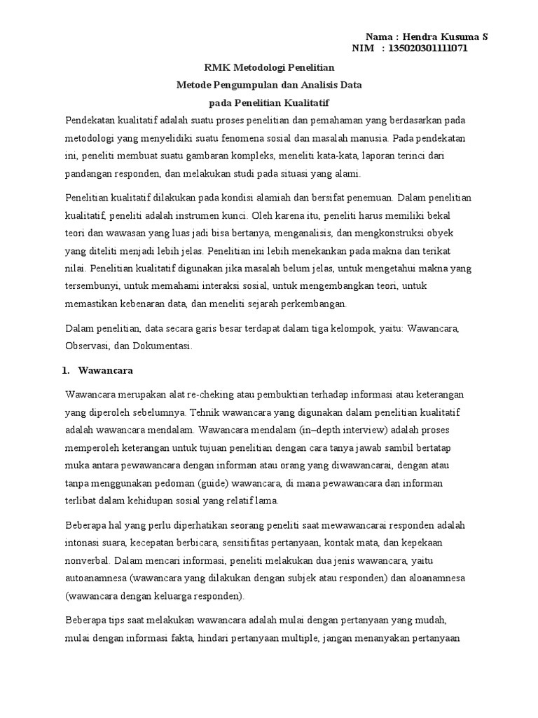 RMK Metode Pengumpulan Dan Analisis Data Pada Penelitian Kualitatif