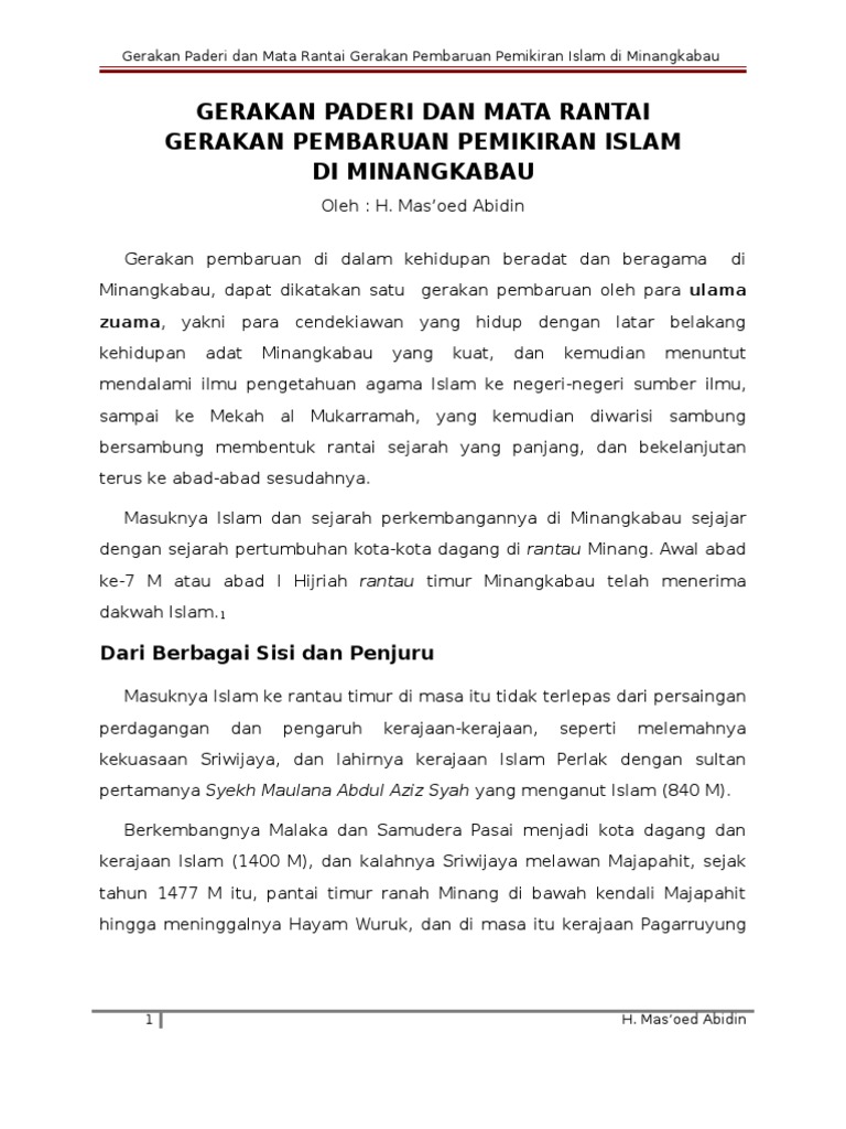 Gerakan Paderi dan Mata Rantai Gerakan Pembaruan di Minangkabau