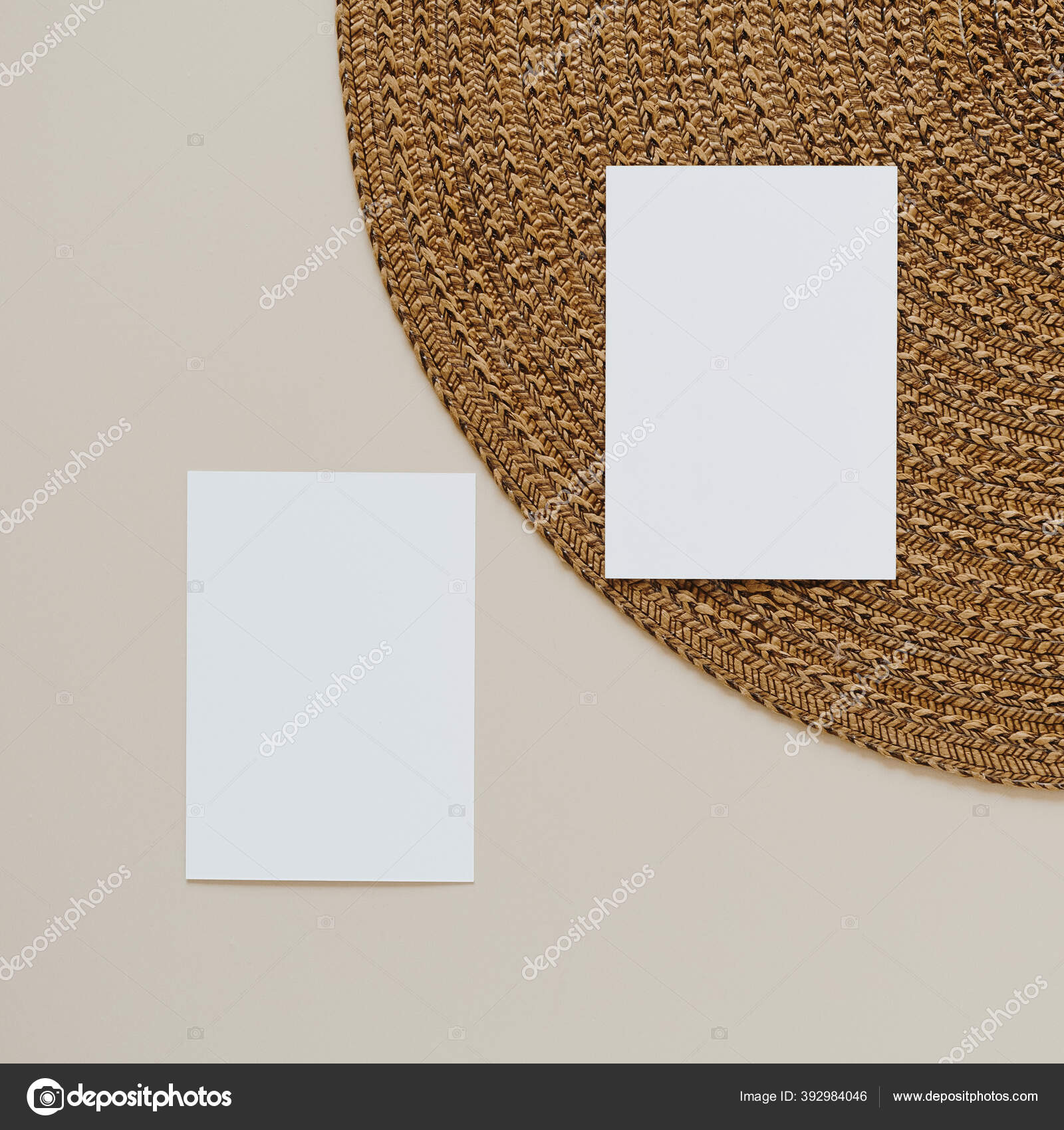 Blank Paper Cards Mockup Copy Space Wicker Napkin Beige Background …