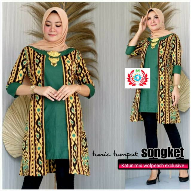 Atasan wanita dewasa baju tunik batik tumpuk songket anggun dan terbaru | Shopee Indonesia