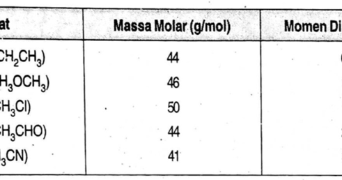 Berdasarkan pada massa molar dan momen dipol dari lima senyawa …