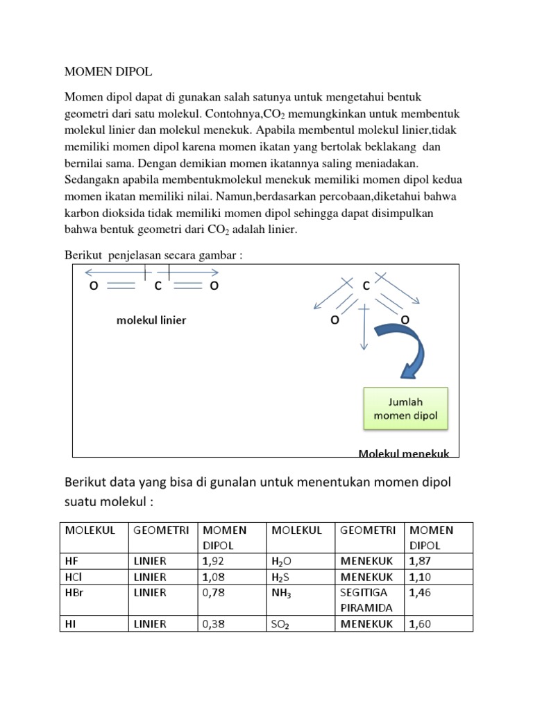 Bagaimanakah momen dipol (momen dua kutub) dan kepolaran dari …