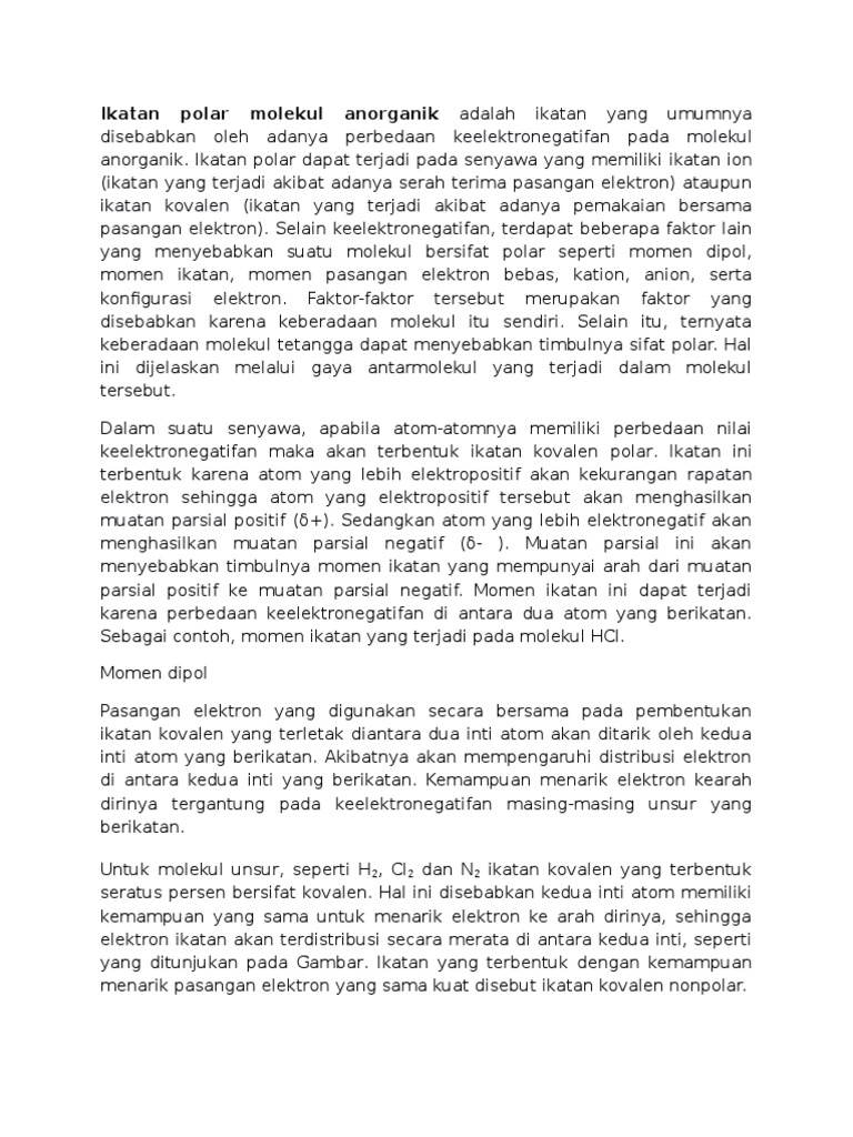 DOC) Ikatan polar molekul anorgani1m | Ade Ningrat - Academia.edu