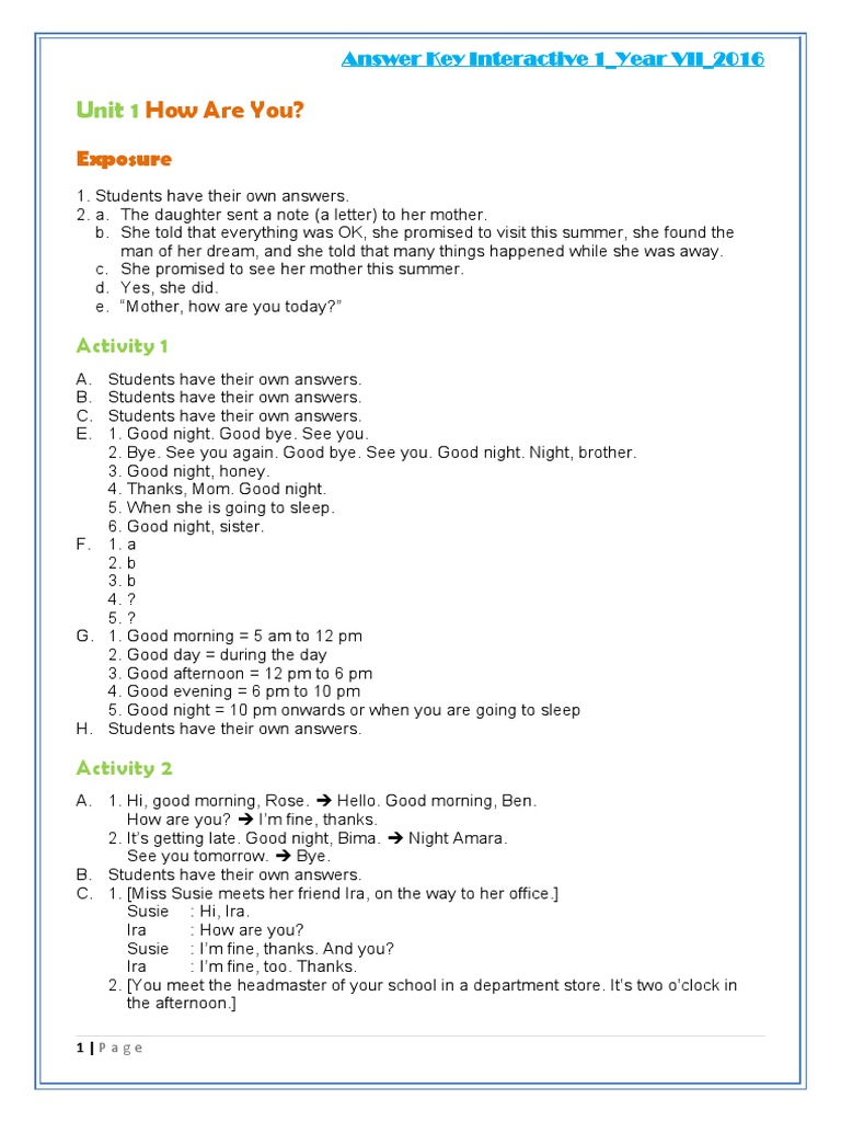 How Are You?: Unit 1 | Kitchen | Bedroom