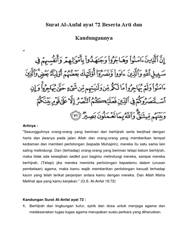 Surat Al Anfal Ayat 72 Beserta Arti Dan Kandungannya Zulblogger - Cute766